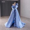 Luxury Model Light Sky Blue A Line Ruffles Stain Formal Evening Dress Prom Gown 241113