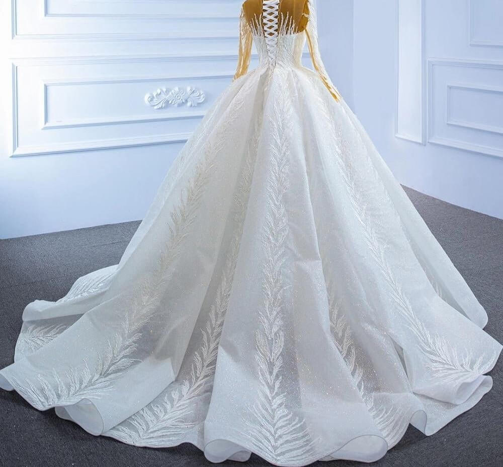 Luxury Model Long Sleeve Sparkly Wedding Dress 67235