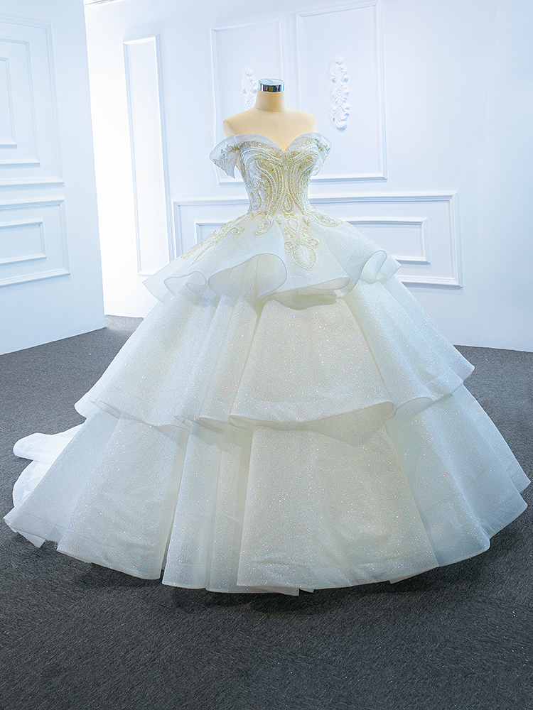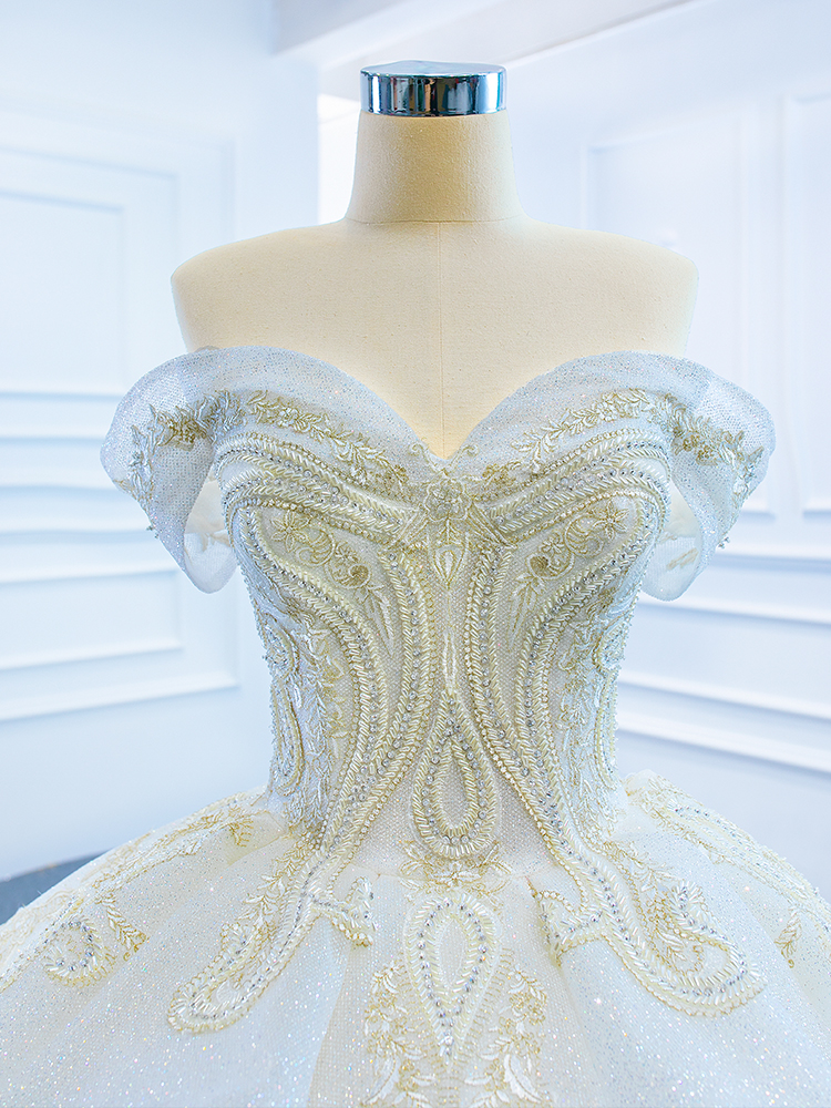 Luxury Model Off The Shoulder Ball Gown Long Wedding Dress 67166