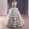 Luxury Model Open Back Sleeveless Pleats Tiered A Line Long Formal Party Dress 241156
