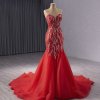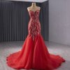 Luxury Model Red Sleeveless beading Tull Formal Prom Dress Evening Gown 241050
