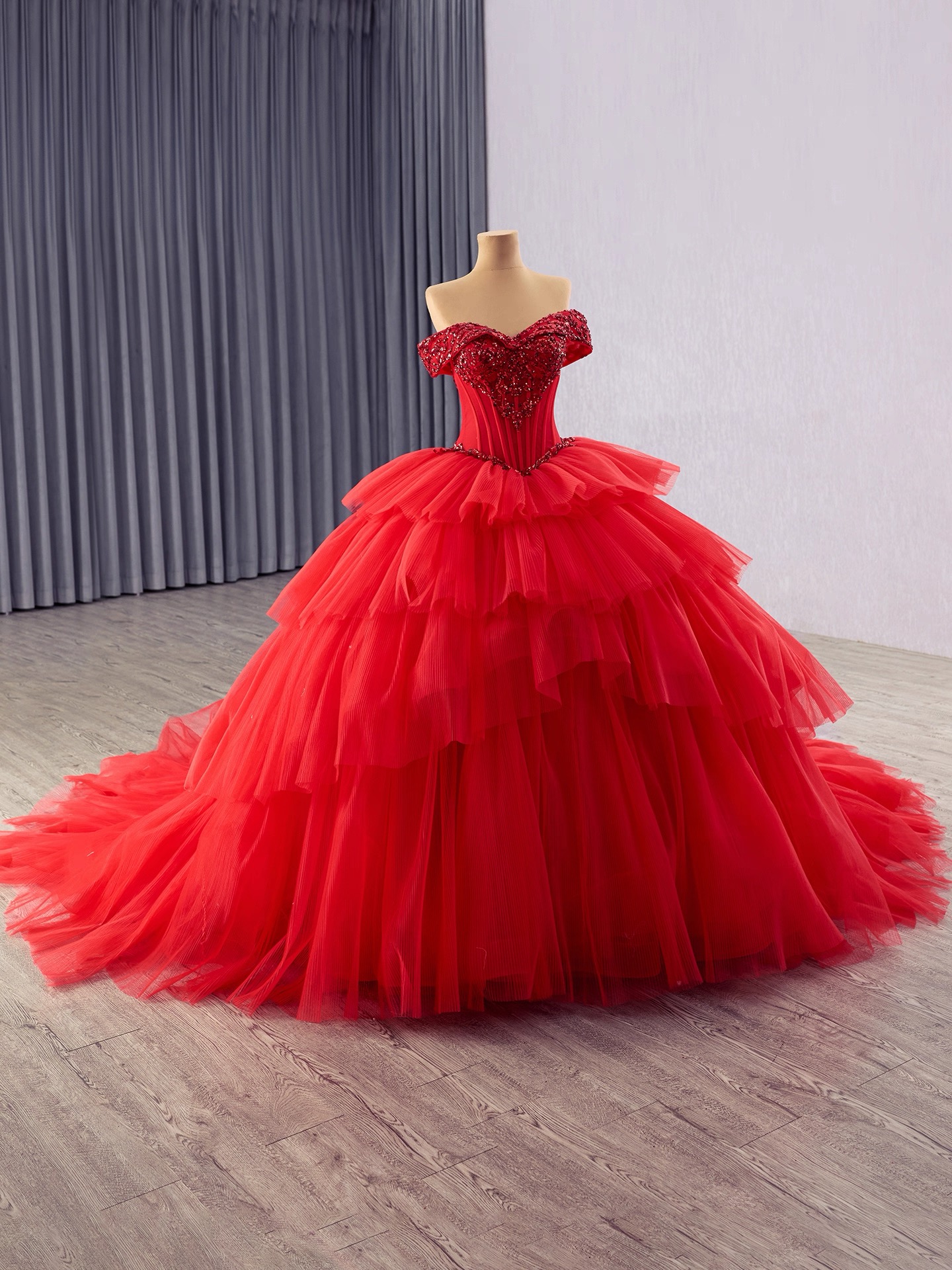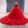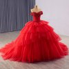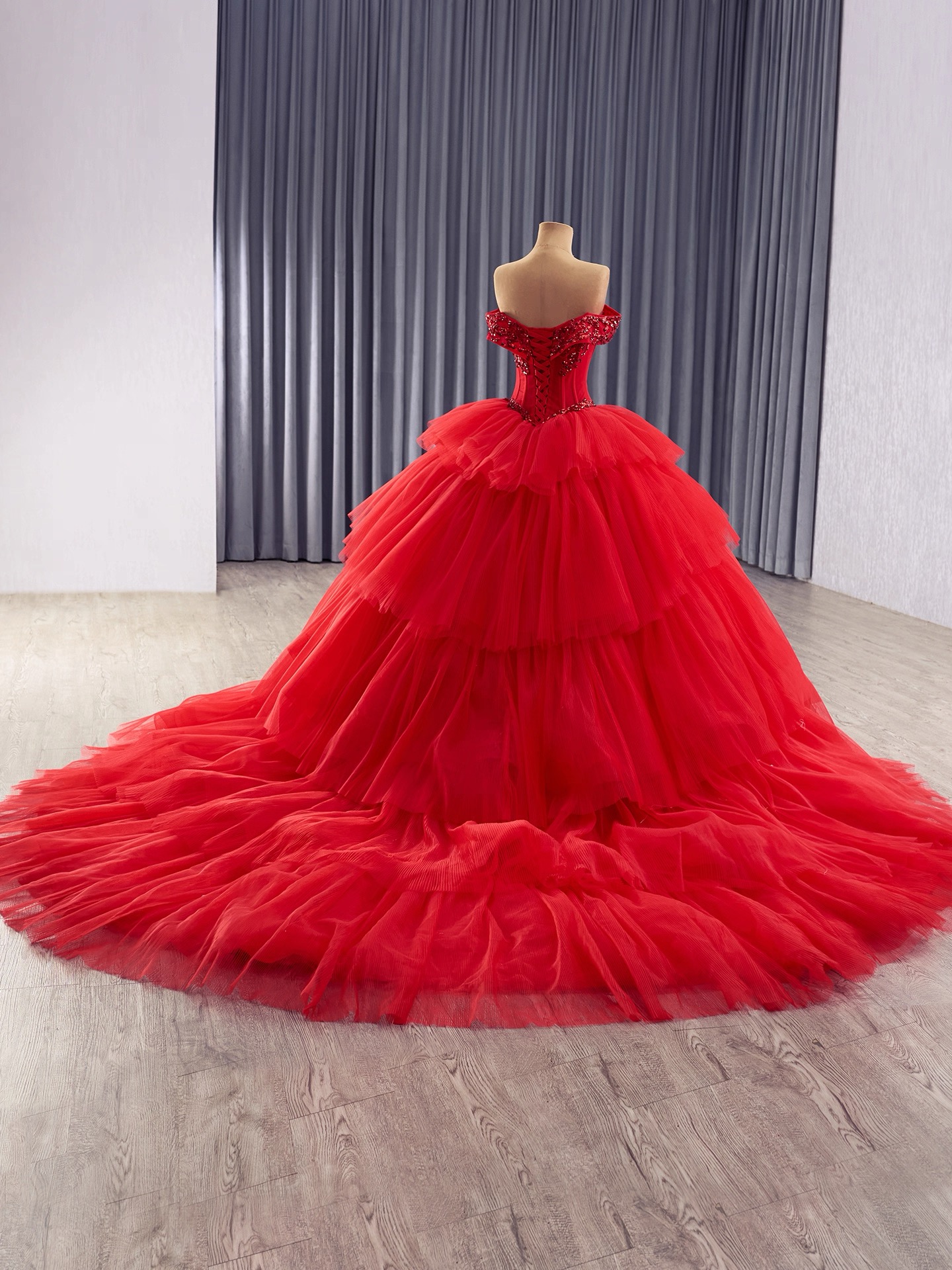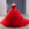 Luxury Model Red Tiered Tull Applique Ball Gown Prom Dress Quinceanera Dress 251013