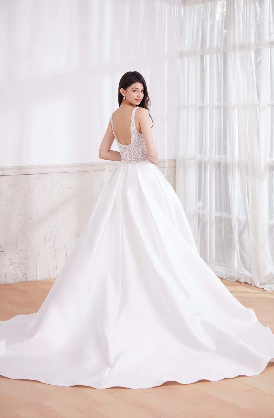 Luxury Model Sexy Beading Stain A Line Wedding Dress MO004