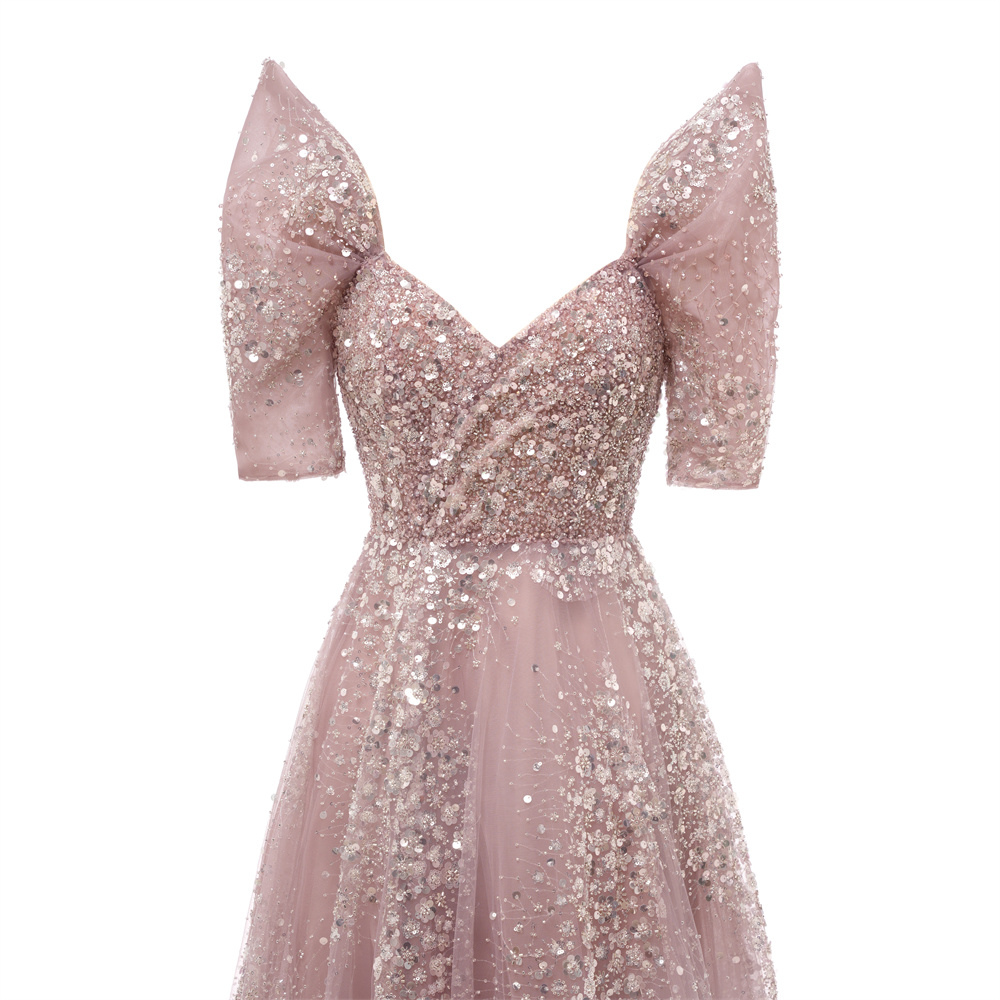 Modest Beading Sequin A Line Formal Prom Dress Evening Gown www75002