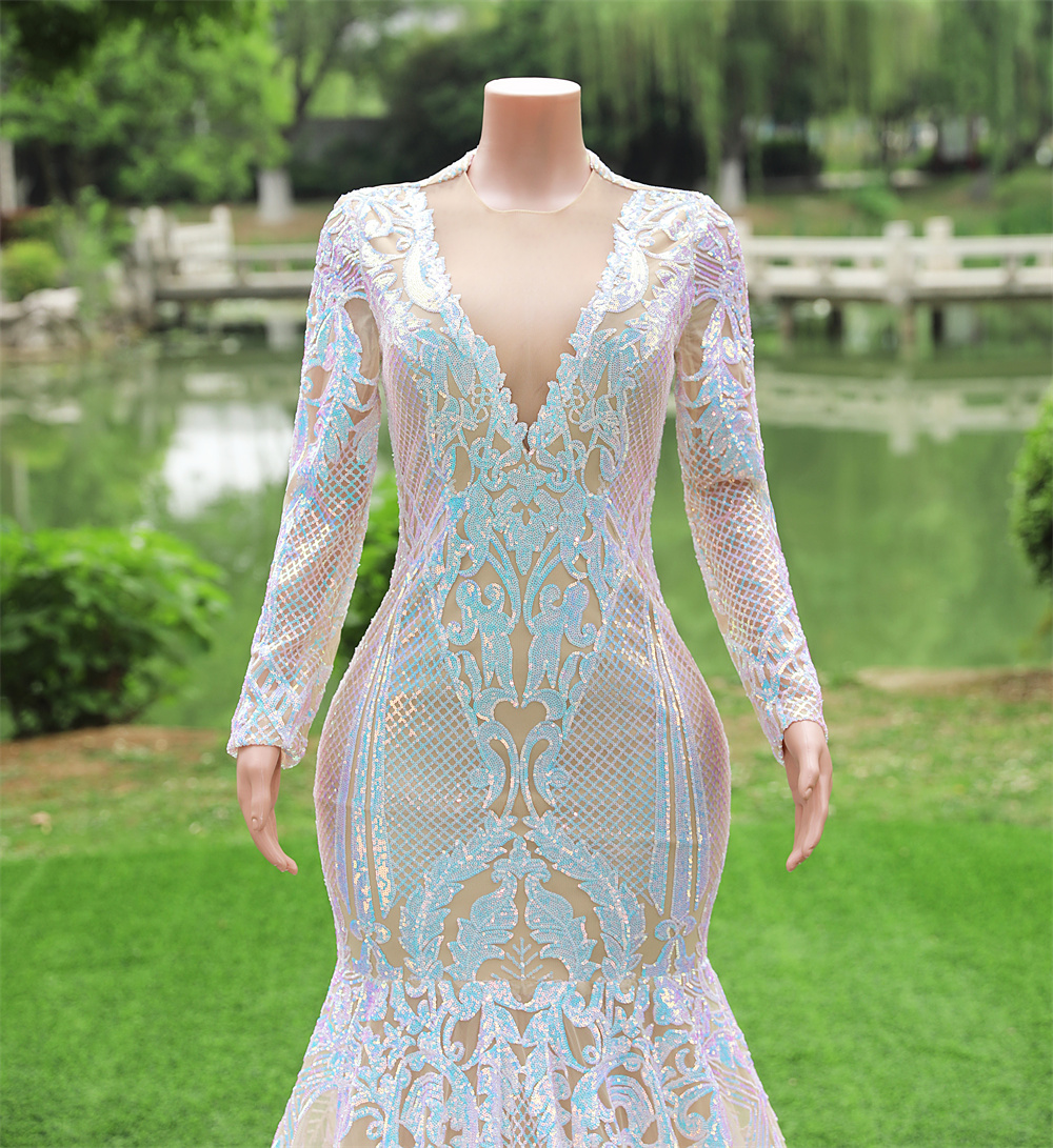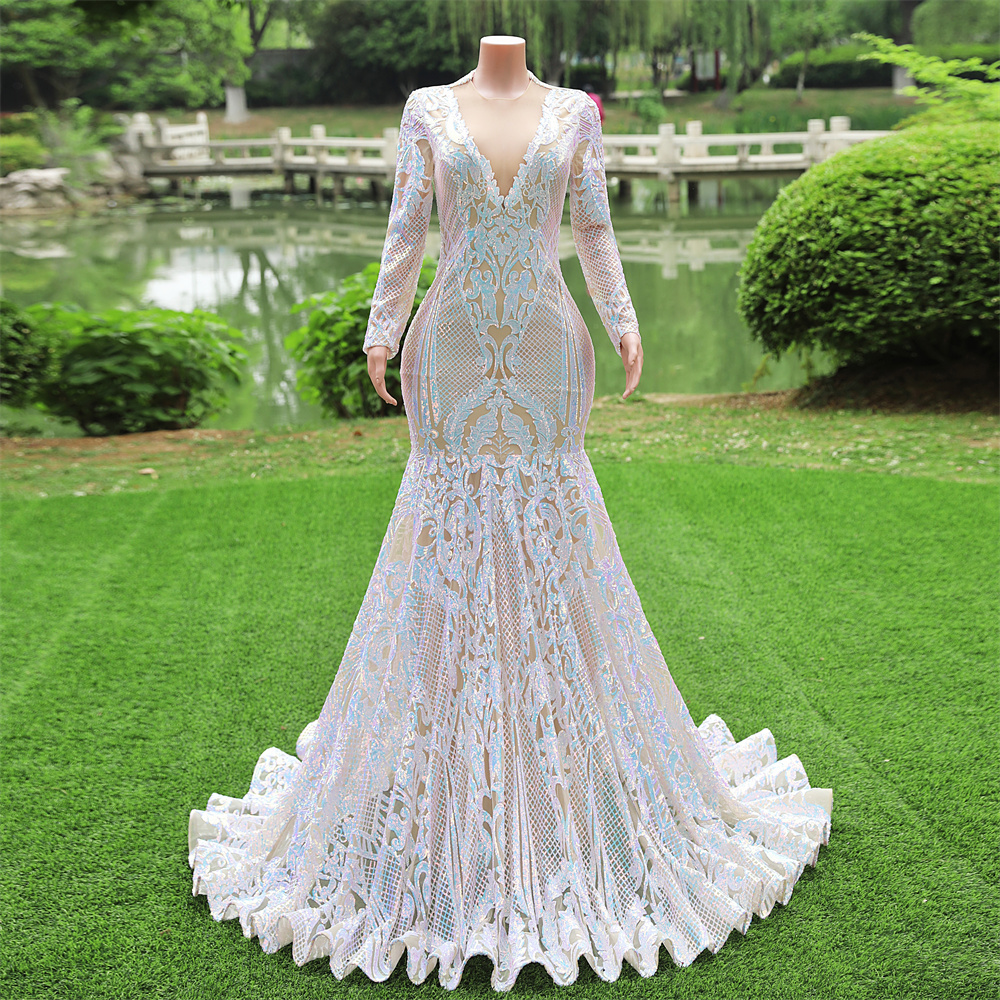 Modest Long Sleeve Sequin Mermaid Formal Prom Dress Evening Gown FY4002
