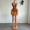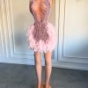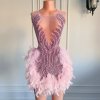 Pink Beading Sleeveless Feather Short Prom Dress XY0036