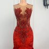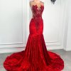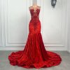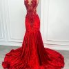 Sexy Red Beaded Sleeveless Long Mermaid Prom Dress XY0054