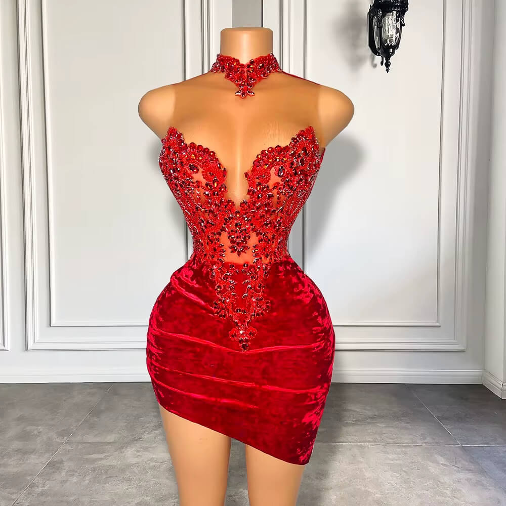 Sexy Red Beading Sleeveless Mermaid Short Prom Dress XY0061