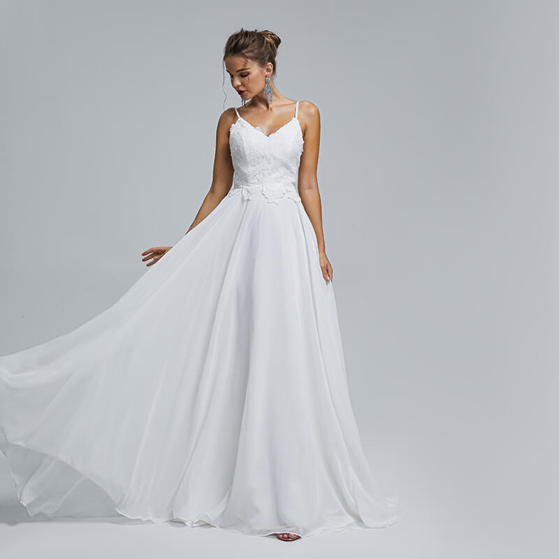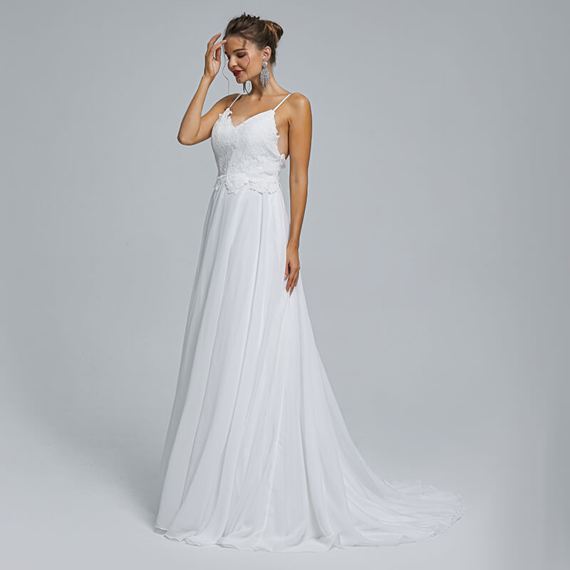 Spaghetti V Neck Applique Sleeveless Chiffion Wedding Dress ST006
